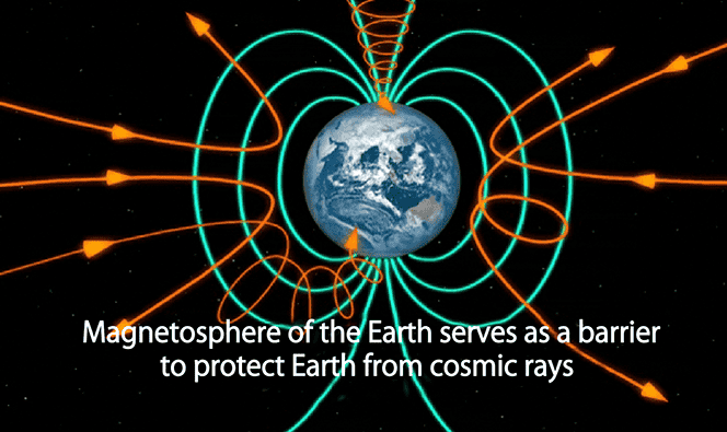 Figure 2: The magnetosphere plays a role of a barrier to protect the earth from cosmic rays.