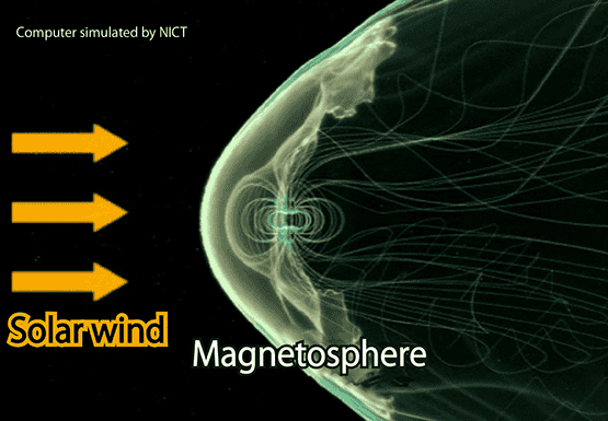 Earth's magnetic field does not extend infinitely but is deformed by solar wind (the supersonic wind consisting of plasma and a magnetic field arriving from the sun), forming a cometlike structure. We call this structure Earth's magnetosphere (Figure 3). The condition of the magnetosphere is markedly changed by the solar wind.