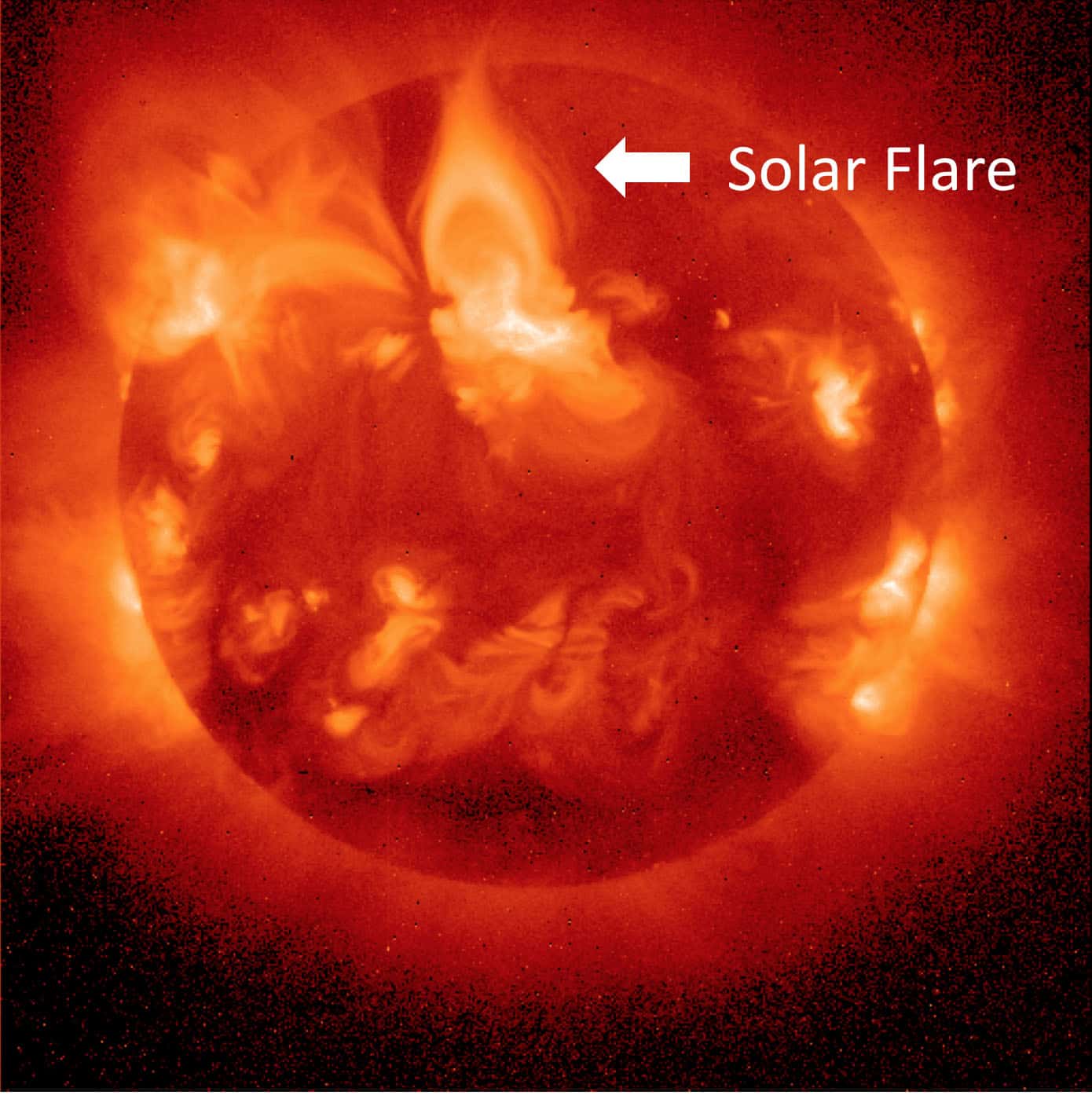 A sudden brightening around sunspots at X-ray, EUV, and optical wavelengths is called a solar flare (Fig. 3). Solar flares are the largest eruptions in the solar system, and they release ionized gas and plasma from the solar atmosphere, harmful high-energy particles, and a large amount of X-rays. The typical size of a solar flare is 10-100 Mm and the typical energy is comparable to 10(5-8) hydrogen bombs. However, the fundamental mechanism of solar flares has not been revealed despite their discover more than 100 years ago. Solar flares usually occur at and around sunspots with a strong magnetic field, where stored magnetic energy, such as magnetically sheared energy, is released. It is known that sunspots with complex structures produce a larger class of flares more easily.